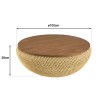 Table basse ronde 100x100cm en rotin beige plateau amovible. Dimensions : 100 x 100 x 36 cm. Article en Teck recyclé/Rotin/Acier.