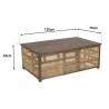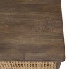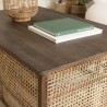 Table basse en bois de manguier foncé, patchwork cannage naturel. Dimensions : 120 x 75 x 45 cm. Article en Manguier/Rotin.