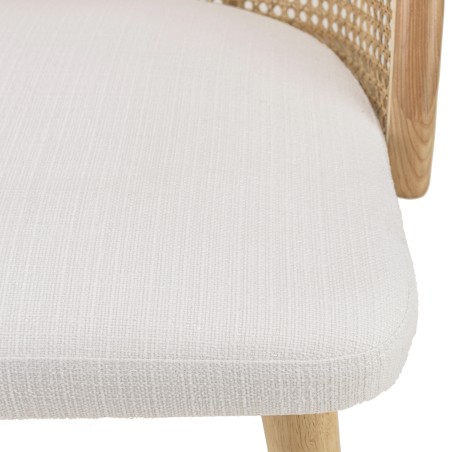 Laissez-vous charmer par cette chaise aux couleurs naturelles, elles apporteront de la luminosité et de la chaleur à votre intérieur. Son dossier en rotin et son assise en tissu blanc allient confort et élégance.