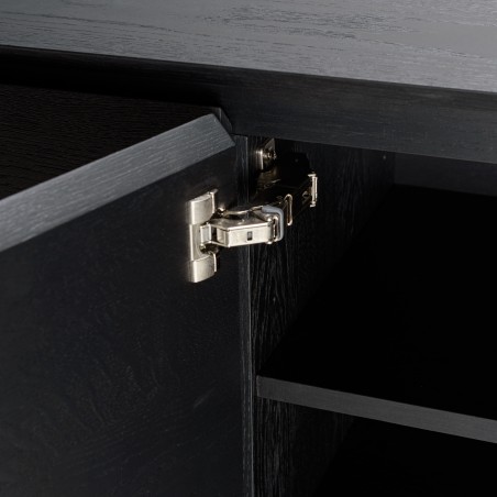 Découvrez l'élégance noire avec ce buffet composé de 4 portes et 6 étagères, réhaussé par des pieds en métal noir. Un meuble à la fois chic et fonctionnel pour votre intérieur. Créez un intérieur sophistiqué avec ce buffet moderne et spacieux.