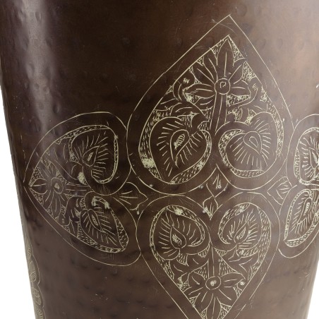 Ce vase en aluminium, avec sa teinte cuivre foncé et sa finition patinée, se distingue pour sublimer votre décor.