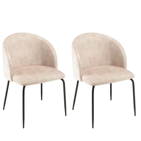 Lot de 2 chaises velours beige dossier enveloppant pieds acier TOM. Article en Velours polyester/Acier/Mousse PE. Dimension 55 x 57 x 80 cm.