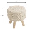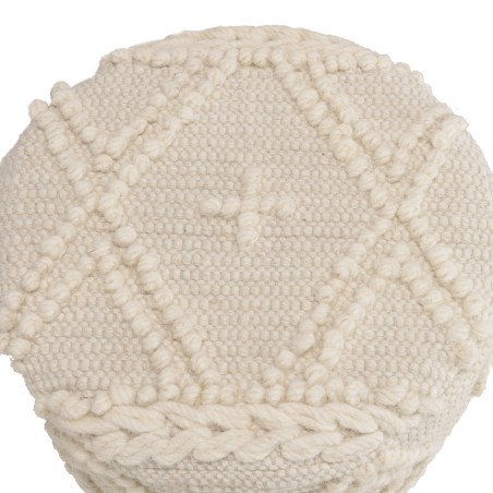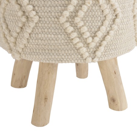 Tabouret rond 40x40cm laine motifs losanges ivoire pieds bois. Article en Laine/Eucalyptus recyclé/MDF. Dimension 40 x 40 x 42 cm.