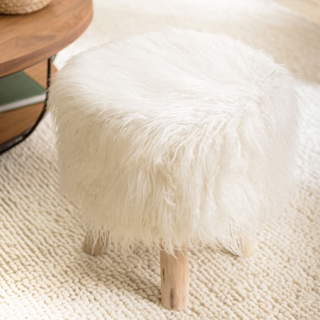Envie de réchauffer votre intérieur? Ce tabouret effet peau de mouton est parfait pour cela.