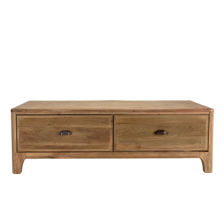 Table basse rectangulaire 140x85cm 4 tiroirs bois Pin recyclé. Article en pin recyclé. Dimension 140 x 84.5 x 45 cm.