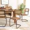 Lot de 2 chaises manguier assise matelassée cuir pieds rétro. Article en Cuir/Acier/Rotin/mousse polyuréthane/Manguier. Dimension 44 x 53.5 x 89 cm.