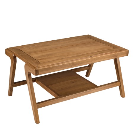 Table basse FLORES rectangulaire double plateau en teck. Article en Teck. Dimension 90 x 60 x 46.5 cm.