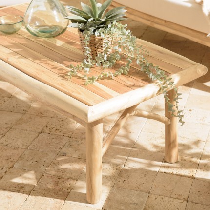 Envie de nouveauté dans votre espace à vivre? Craquez pour cet ensemble de mobilier composé d'un canapé 2 places, de deux fauteuils et d'une table basse en teck.