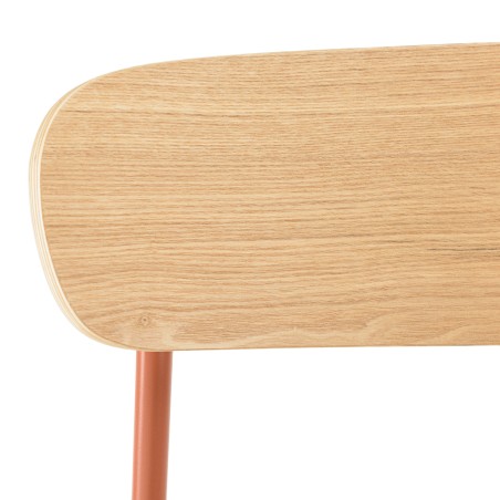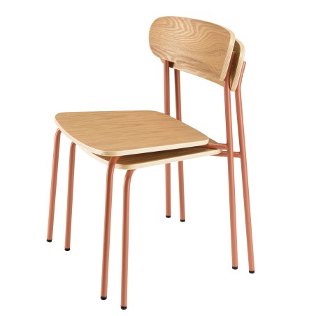 Lot de 2 chaises « écolier » en bois de frêne et acier terracotta. Article en contreplaqué frêne/Acier. Dimension 47 x 50.5 x 77.5 cm/47 x 50.5 x 77.5 cm.