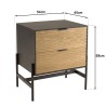 Chevet marron et noir 2 tiroirs Pin pieds métal noir. Article en Mélaminé/Pin/Acier. Dimension 54 x 40 x 59 cm.
