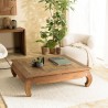 Table opium 120x120cm en teck recyclé plateau mosaïque. Article en teck recyclé/contreplaqué. Dimension 122 x 122 x 36.5 cm.