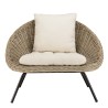 Fauteuil lounge en kubu coussin d'assise blanc pieds métal noir. Article en Rotin/Acier/Kubu/Polyester, Coton, Viscose/Mousse effilochée, dacron, silicone. Dimension 102 x 88 x 82 cm.