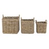 Set de 3 paniers de rangement carrés en kubu naturel. Article en kubu. Dimension GM : 43 x 43 x 46 cm/MM : 35 x 35 x 39 cm/PM : 27 x 27 x 32 cm.