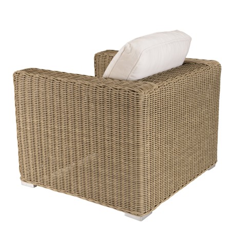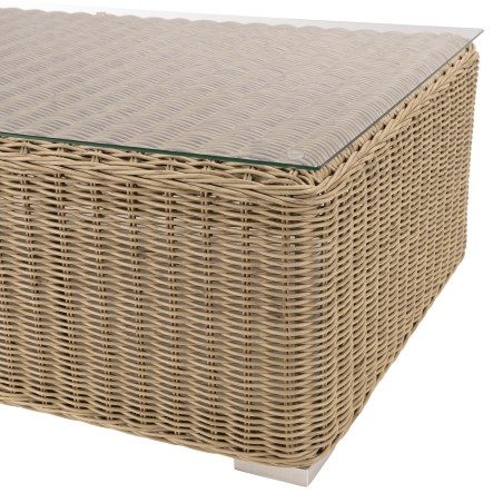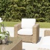 Salon de jardin 5 places en rotin synthétique taupe. Article en rotin synthétique/aluminium/mousse effilochée, dacron, silicone. Dimension canapé : 201 x 86 x 68 cm/ fauteuils : 90 x 86 x 68 cm/ table : 141 x 76 x 42.5 cm.
