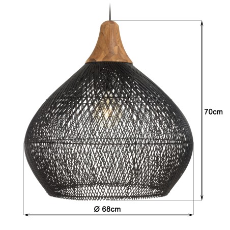 Suspension "cloche" 68x68cm en rotin couleur noire et teck. Article en Rotin/Teck recyclé/Acier. Dimension 68 x 68 x 70 cm.