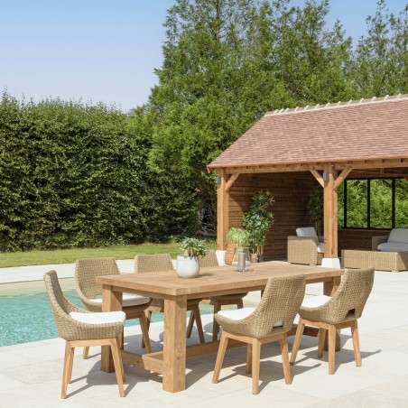 Sa grande table en teck recyclé sera parfaitement accompagnée de ses 6 chaises.