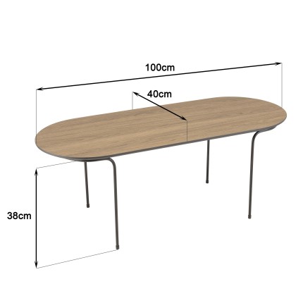 Table basse rect. angles arrondis 100x40cm mocha pieds métal. Article en MDF plaqué papier texturé/Acier. Dimension 100 x 40 x 38 cm.