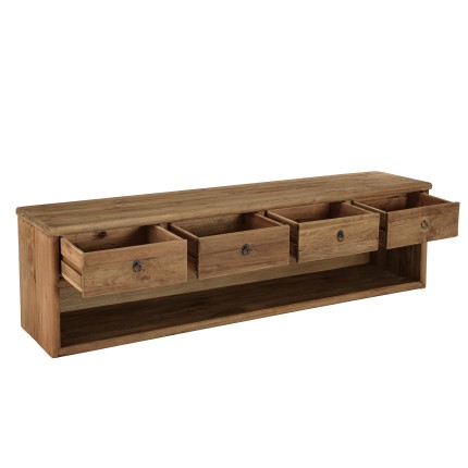 Meuble TV 4 tiroirs 1 niche, longueur 200cm bois pin recyclé. Article en Pin recyclé/Contreplaqué. Dimension 200 x 45 x 55 cm