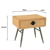 Chevet 1 tiroir en pin couleur naturelle et pieds métal vert. Article en Pin/Acier. Dimension 60 x 40 x 56.5 cm.