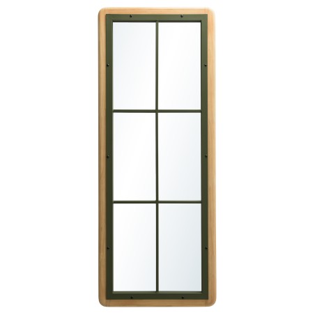 Miroir rectangulaire esprit verrière pin et métal vert. Article en Verre/Pin/Acier/MDF. Dimension 46.5 x 3.7 x 119 cm.