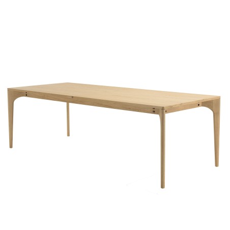 Table à manger ext. 240/292cm naturelle pieds en chêne massif. Article en MDF plaqué chêne/Chêne. Dimension 240 x 100 x 76 cm.