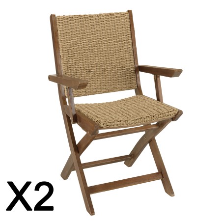 Lot de 2 fauteuils pliants acacia huilé et rotin synthétique. Article en Acacia/Rotin synthétique. Dimension 56 x 57 x 90 cm/56 x 57 x 90 cm.