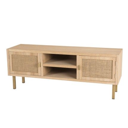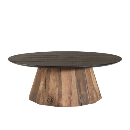 SIXTINE - Table basse ronde diam68 plateau bois teck recyclé rotin beige