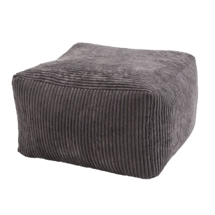 Pouf carré 57x57cm tissu velours côtelé gris anthracite. Dimensions : 57 x 57 x 34 cm . Article en Tissu velours côtelé et billes de polystyrène.
